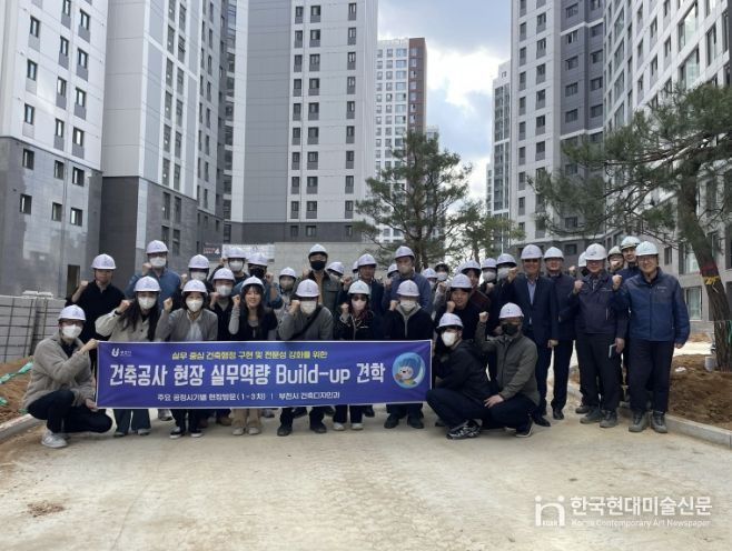 한국현대미술신문 배윤섭 기자 | 부천시는 지난 28일 건축업무 담당 공무원의 현장 대응력 향상을 위해 ‘건축공사 현장 실무역량 빌드업(Build-up) 견학’ 2차 과정으로 소사구 송내동 ‘송내역 푸르지오 센트비엔’ 마감공사 현장을 방문했다.