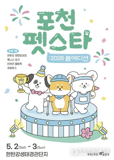 한국현대미술신문 배윤섭 기자 | 반려동물 친화관광도시 포천시는 오는 5월 2일부터 3일까지 이틀간 한탄강생태경관단지에서 ‘2026 포천 펫스타 봄 에디션’을 개최한다.