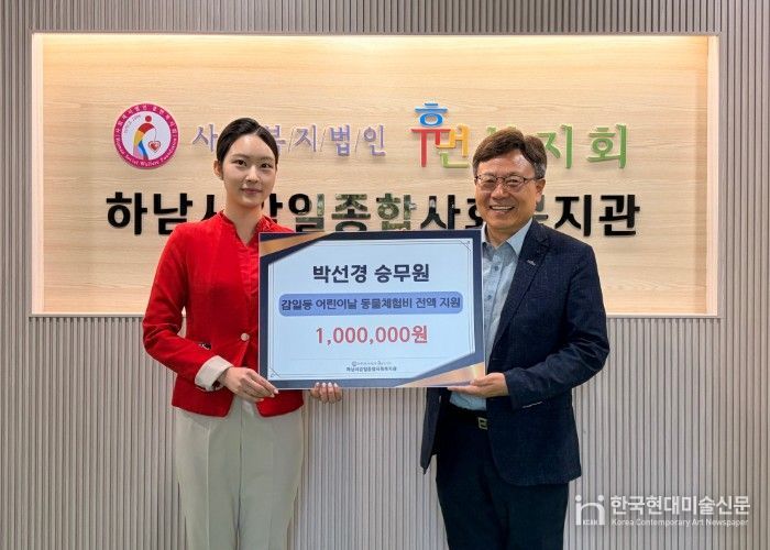 한국현대미술신문 배윤섭 기자 | 박선경 승무원은 4월 26일, 하남시감일종합사회복지관에 감일동 어린이날 행사 운영을 위한 후원금 100만 원을 전달했다.