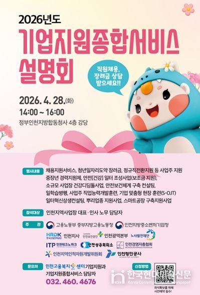 한국현대미술신문 박재남 기자 | 중부지방고용노동청은 인천지방중소벤처기업청 등 유관기관과 함께 4월 28일 오후 2시 정부인천지방합동청사에서 ‘기업지원 종합서비스’ 설명회를 개최했다.