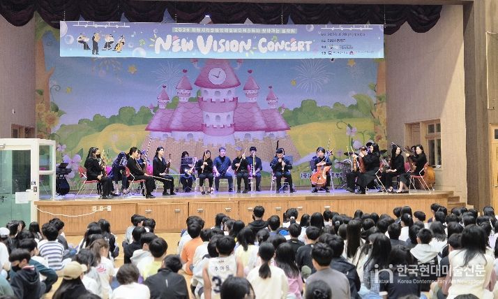 한국현대미술신문 배윤섭 기자 | 미사초등학교는 5월 28일 교내 강당에서 ‘하트 시각장애인 체임버 오케스트라’의 ‘뉴비전 콘서트’를 개최했다고 밝혔다. 이번 공연은 학생들의 장애 인식 개선과 문화예술 감수성 향상을 위해 마련됐으며, 4·5·6학년 학생들이 참여했다.