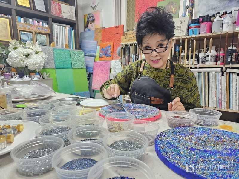 서양화가 남기희 작가와의 교류를 통해 더욱 정교해진 그의 화법은 단순한 장식성을 넘어선다. 관람객은 처음엔 보석처럼 빛나는 표면에 매료되지만, 이내 그 빛의 층위 속에 숨겨진 고요하고도 깊은 내면의 시선과 마주하게 된다.