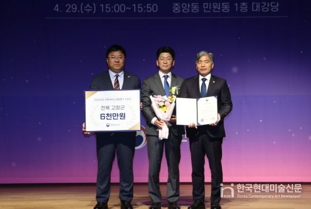 한국현대미술신문 기자 | 고창군이 29일 정부세종청사에서 열린 ‘2025년 민원서비스 종합평가 시상식’에서 행정안전부장관 기관 표창을 수상하고 인센티브로 특별교부세 6000만원을 확보했다고 밝혔다.