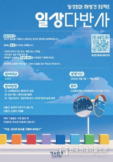 재단 관계자는 “주민의 시선이 머문 사진과 기억이 모여 고성의 현재를 보여주는 의미 있는 기록이 될 것”이라며, “주변 공간의 가치를 함께 남길 수 있도록 많은 참여를 바란다.”라고 전했다.