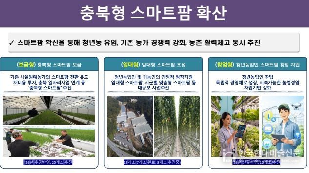 한국현대미술신문 신정은 기자 | 충청북도가 청년농업인의 안정적 정착과 기존 농업인의 경쟁력 강화, 미래형 농업 전환을 위해 스마트팜 확산 3대 전략을 본격 추진한다고 밝혔다.