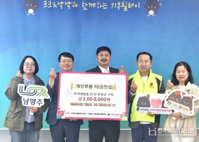 한국현대미술신문 배윤섭 기자 | 남양주시는 29일 진접오남행정복지센터에서 김민섭씨가 취약계층 지원을 위해 후원금 300만 원을 전달했다고 밝혔다.