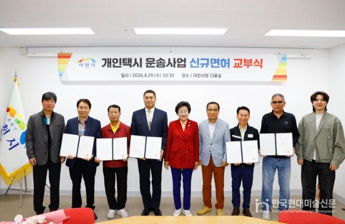 한국현대미술신문 배윤섭 기자 | 이천시는 29일 시청 다올실에서 개인택시운송사업 신규 면허증 교부식을 개최하고, 심사를 통해 최종 선정된 5명의 대상자에게 면허증을 전달했다고 밝혔다.