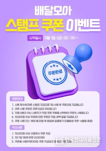 한국현대미술신문 신정은 기자 | 제천시는 공공배달앱 ‘배달모아’ 이용 고객을 대상으로 5월 1일부터 ‘스탬프 쿠폰 이벤트’를 진행한다.