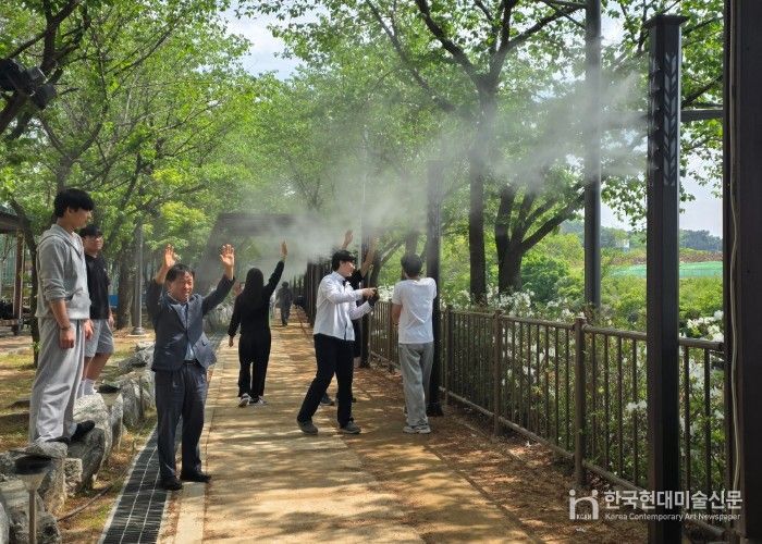 한국현대미술신문 배윤섭 기자 | 남양주시 진건읍은 여름철 폭염 대응을 위해 사능천 맨발걷기길에 ‘쿨링포그(Cooling Fog)’를 설치했다고 29일 밝혔다.