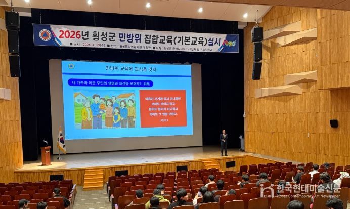 한국현대미술신문 원진 기자 | 횡성군이 민방위 대원의 재난 대응 역량 강화를 위해 4월 29일 횡성문화예술회관 대강당에서 ‘2026년 민방위 집합교육’을 실시한다고 밝혔다.