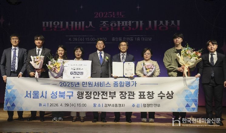 한국현대미술신문 배건 기자 | 서울 성북구가 행정안전부와 국민권익위원회가 공동 주관한 ‘2025년 민원서비스 종합평가’에서 행정안전부 장관 표창을 수상하며 민원행정 우수 지자체로서의 위상을 다시 한 번 확인했다.