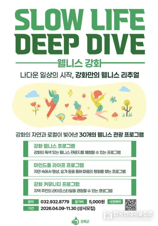 한국현대미술신문 박재남 기자 | 강화군은 올해 처음으로 자연과 지역 고유의 라이프스타일을 기반으로 한 웰니스 관광 프로그램을 본격 운영하고, 참여자 모집에 들어갔다.