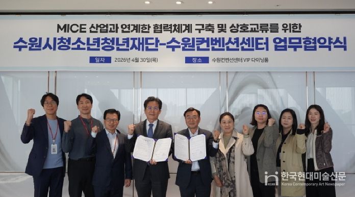 한국현대미술신문 배윤섭 기자 | 수원시청소년청년재단(이사장 최종진)과 수원컨벤션센터가 4월 30일 양 기관의 상호 협력과 교류 확대를 위한 업무협약을 체결했다.