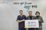 한국현대미술신문 배윤섭 기자 | 가평군에 소재한 엄지안마원은 최근 가평읍 행정복지센터를 방문해 이웃돕기 성금 40만 원을 기탁했다. 용석복 엄지안마원 원장은 “지난해에 이어 올해도 기부할 수 있어서 참으로 감사한 마음이다”며 “비록 큰 액수는 아니지만 안마 바우처를 이용하시는 이용인들의 정성과 마음이 함께 담긴 성금이라 그 의미가 더욱 뜻깊다”고 말했다. 장석조 가평읍장은 “기부에는 크고 작음이 없고 오직 전하는 분들의 귀한 마음과 따뜻한 온기가 중요하다”며 “잊지 않고 올해도 그 마음을 전달해 준 엄지안마원에 깊은 감사를 드린다”고 답했다.