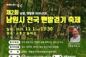 한국현대미술신문 기자 | 제2회 남원시 전국 맨발걷기 축제, 11월 1일 교룡산 둘레길에서 개최 남원시가 주최하고 맨발걷기국민운동본부 남원지회가 주관하는 ‘제2회 남원시 전국 맨발걷기 축제’가 오는 11월 1일 오후 1시 30분, 교룡산 둘레길 일원에서 열린다. 이번 행사는 남원시와 맨발걷기국민운동본부가 공동으로 주최하며, 전국 각지에서 참가자들이 모여 건강과 힐링, 그리고 문화를 함께 나누는 걷기 축제의 장이 될 전망이다. 참가자들은 황톳길과 소나무 숲길, 역사 탐방로를 따라 걸으며 단순한 걷기를 넘어 마음의 평안과 자연 치유의 시간을 갖게 된다. 또한 교룡산성의 역사적 의미를 배우고 지역 문화의 아름다움을 체험할 수 있는 다양한 프로그램도 마련된다. 행사 당일에는 축하공연, 맨발걷기 특강, 치유 사례 발표, 맨발 산행 등이 이어지며, 선착순 500명에게는 생수와 떡, 접이식 배낭 등이 제공된다. 이번 맨발걷기 코스에는 기존 교룡산 임도와 등산로 노선을 활용하여 남원시가 총 사업비 25억원을 들여 지난 4월 착공 후 6개월 만에 완공한 코스로, 1.1km의 황톳길과 1.