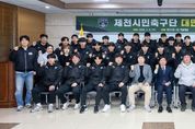 한국현대미술신문 신정은 기자 | 제천시민축구단 선수단과 구단주의 공식 대면식이 지난 11일 제천시청에서 열렸다. 오는 24일 창단식을 앞두고 열린 이번 대면식에는, 구단주인 김창규 제천시장과 김용기 단장, 선수단 등 관계자들이 참석했다. 선수와 코치진 구성을 마친 제천시민축구단은 구단주와 공식적으로 첫인사를 나누고, 팀의 운영 방향과 시즌 목표를 공유했다. 대면식은 선수단과 코치진 소개, 이번 시즌 운영 계획과 목표 발표, 질의응답 순으로 진행됐다. 김창규 제천시장은 인사말을 통해 선수단을 격려하며, “제천시를 대표하는 시민구단으로서 책임감을 가지고 모든 경기에 최선을 다해달라”고 당부했다. 김용기 단장은 구단 운영 방침과 비전을 소개하며, “제천시와의 협력을 바탕으로 투명하고 신뢰받는 구단을 만들어가겠다”라고 의지를 밝혔다. 한상구 감독은 “2026시즌 목표로 K4리그 상위권 진입과 리그컵 및 코리아컵 3라운드 이상 진출, 충청북도 대표 선발전 승리를 통한 전국체전 우승에 도전하겠다”라며 각오를 밝혔다. 공격수 손주원 선수는 개인 목표를 밝히며, “매 경기 공격 포인트를 기록해 팀에