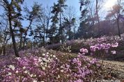 한국현대미술신문 신정은 기자 | 청양군 청양읍의 중심에 위치한 우산 산림조경숲 산책로가 분홍 진달래와 희귀한 백진달래의 환상적인 조화로 등산객들의 마음을 사로잡고 있다. 우산 일대는 소나무 군락이 잘 형성돼 사계절 푸른 경관을 유지하는 곳으로, 소나무 아래에서 자라는 진달래는 생육환경과 형태적 특징이 잘 맞아 자연 속에서 조화를 이루는 대표적인 수목으로 꼽힌다. 군은 지난 2022년부터 특색 있는 경관 조림 사업의 일환으로 우산 내 소나무 숲 하층에 진달래 1만 2,800본과 백진달래 5,500본을 식재했다. 현재 산책로를 따라 만개한 진달래는 소나무의 짙은 녹음과 대비를 이루며 한 폭의 수채화 같은 풍경을 연출하고 있다. 특히 일반적인 분홍 진달래 사이사이에 피어난 순백의 백진달래는 등산객들에게 색다른 볼거리를 선사하고 있으며, 산책로 주변에 함께 식재된 철쭉과 맥문동이 4월 말부터 차례로 꽃망울을 터뜨려 봄 내내 끊이지 않는 꽃길을 선사할 예정이다. 우산의 진달래 꽃길은 청양읍 감리교회 뒤편 약수터를 지나 백천리 방향 산책로를 따라가면 만날 수 있다. 읍내 권역에 위치해 접근성이