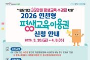 한국현대미술신문 박재남 기자 | 인천광역시는 시민 누구나 차별 없이 평생학습에 참여할 수 있는 환경을 조성하고 시민의 미래 역량 강화를 위해 '2026년 평생교육이용권 지원사업'을 본격 추진한다고 밝혔다. 평생교육이용권 사업은 단순한 교육비 지원을 넘어 시민의 삶에 실질적인 변화를 가져오는 데 중점을 두고 있다. 참여 시민은 경제적 부담을 덜고 원하는 강좌를 자유롭게 선택할 수 있어 자기 계발과 역량 강화를 위한 기회를 폭넓게 누릴 수 있다. 이용권은 NH농협 채움카드에 연 1회, 1인당 35만 원 상당의 포인트를 충전해 지급하는 방식으로 운영되며, 해당 포인트는 평생교육 강좌 수강료와 교재비 결제에 사용할 수 있다. 지원 대상은 ▲19세 이상 성인 중 기초생활수급자 및 차상위계층(일반) ▲65세 이상(노인) ▲30세 이상 성인(AI·디지털 분야) ▲19세 이상 등록(장애인복지법) 장애인이며, 총 6천여 명의 시민에게 폭넓은 학습 기회를 제공한다. 평생학습 교육기관은 전국 3,549개소(인천 183개소)로, 이용자 본인의 학습 수요에 맞춰 원하는 평생학습 강좌를 자유롭게 선택해 수강하