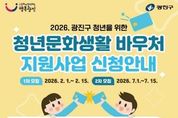 한국현대미술신문 배건 기자 | 광진구가 취업을 준비 중이거나 사회에 첫발을 내딛은 청년들의 여가 활동을 지원하기 위해 ‘청년문화생활바우처 지원사업’을 본격 추진한다. 지난해 첫 실시된 청년문화생활바우처 지원은 지역 내 청년들이 공연 및 영화 관람, 미술, 음악, 스포츠 활동 등 다양한 문화적 경험을 할 수 있도록 돕는 사업이다. 지원 대상은 광진구에 1년 이상 연속해 거주 중이며, 가구 기준중위소득 120% 이하인 24세~29세 청년이다. 상·하반기 1·2차에 걸쳐 각 250명씩 선발해 총 500명에게 1인당 10만 원의 문화생활비를 바우처 카드로 지급한다. 1차 신청은 2월 1일부터 15일까지 광진구청 누리집에서 온라인으로 진행한다. 구는 청년들의 문화 향유권을 증진하는 동시에 지역 문화·여가 산업과 상생하기 위해 바우처 사용처인 가맹점을 연중 모집한다. 카드 결제 시스템을 갖춘 ▲문화예술시설(미술·음악·연극 등) ▲건강체육시설(체육관·수영장·체육용품점 등) ▲진로개발·취미활동시설(공방·체험·기술교육 등) ▲공유시설(스터디카페·공유사무실 등)을 비롯해 관내 문화·여가 관련 모든 업종 사업장이 참여