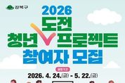 한국현대미술신문 배건 기자 | 서울 강북구는 청년들의 창의적인 아이디어를 지역사회에서 실현할 수 있도록 돕는 ‘2026년 청년도전 프로젝트’ 참여자를 모집한다고 밝혔다. ‘청년도전 프로젝트’는 청년이 직접 기획한 사업을 발굴·선정해 실행까지 이어질 수 있도록 지원하는 사업으로, 청년들의 사회 참여 확대와 지역 기반 활동 활성화를 목표로 추진된다. 이번 공모는 강북구에 거주하거나 생활권을 두고 활동하는 만 19세부터 39세까지의 청년 3인 이상으로 구성된 모임 또는 단체를 대상으로 한다. 선정된 팀에는 사업 내용과 규모에 따라 최대 500만원 이내의 사업비가 차등 지원된다. 공모 분야는 ▲청년문화 발굴 및 커뮤니티 활성화 ▲청년 1인가구 및 고립·은둔 청년 지원 ▲청년 안전 및 복지 향상 ▲삼양청년회관 2관 활용 프로그램 운영 등이다. 단, 사업 범위가 강북구가 아닌 불특정 지역에 해당되거나, 단순 친목이나 영리 목적의 사업 등은 제한된다. 참여를 희망하는 팀은 강북구청 홈페이지에서 사업신청서와 제안서, 집행계획서 등 관련 서류를 내려받아 4월 24일부터 5월 22일까지 이메일로 제출 후 일자리청년과