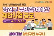 한국현대미술신문 배건 기자 | 양천구는 2027년 예산 편성 과정에 구민의 목소리를 반영하기 위해 ‘주민참여예산 제안사업’ 공모를 오는 5월 15일까지 진행한다고 밝혔다. ‘주민참여예산제’는 예산 편성 과정에 구민이 직접 참여해 지역에 필요한 사업을 제안하고 결정함으로써 예산 운영의 투명성을 높이고 실질적인 재정 민주주의를 실현하는 제도다. 구는 주민참여예산제의 실효성을 높이기 위해 올해부터 운영 방식을 대폭 개선했다. 제안 이후 최종 선정까지의 모든 과정을 단계별로 공개하고, 제안자에게 개별 안내를 제공해 진행 상황을 투명하게 공개한다. 또 부서 검토 단계에서 제안자와의 소통을 강화해 사업을 구체화하고 채택 가능성을 높일 계획이다. 이번 공모의 총예산 규모는 18억 원이며, ‘일반 제안사업’ 15억 원과 ‘주민자치회 제안사업’ 3억 원 등 2개 분야로 나뉜다. ‘일반 제안사업’은 생활 속 불편 해소를 위한 주민 밀착형 사업, 복리 증진 및 지역경제 활성화 사업, 청년 문제 해결 사업, 청소년 학습·진로 사업 등을 대상으로 하며, 사업 1건당 최대 2억 원까지 편성 할 수 있다. 참여는