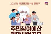 한국현대미술신문 배건 기자 | 종로구가 지역에 필요한 사업을 주민이 직접 제안하고 예산 편성까지 참여하는 ‘주민참여예산 제안사업’을 이달 말까지 공모한다. 아울러 주민들의 정책 역량 강화를 위해 ‘주민참여예산학교’를 운영하고 소통 행정의 폭을 넓힌다. 주민참여예산제는 지역 현안을 주민이 직접 발굴하고 해결 방안을 제시하는 제도로, 재정 운영의 투명성과 민주성을 높이기 위해 마련됐다. 구는 2027년도 주민참여예산 규모를 12억 원 이내로 편성하고, 구정 전반의 문제 해결을 위한 ‘구정참여형’과 동 단위 생활 불편 개선을 위한 ‘지역참여형’으로 나눠 사업을 접수할 계획이다. 구민뿐 아니라 관내 소재 직장인과 학생이라면 참여할 수 있으며, 종로구 누리집 내 공고문을 참고해 담당자 전자우편으로 관련 서류를 제출하면 된다. 접수 사업은 관련 부서 검토 및 주민참여예산위원회 심의를 거쳐 내년도 예산안에 반영한다. 또한 실효성 있는 제안 발굴을 위해 3월 13일 14시부터 17시까지 웰니스센터(율곡로 89)에서 ‘2026년 종로구 주민참여예산학교’를 개최한다. 전문 강사가 진행하는 이