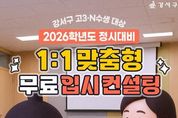 한국현대미술신문 배건 기자 | 서울 강서구가 2026학년도 대학 정시모집을 앞두고 관내 고등학교 3학년과 재수생, 학부모를 대상으로 ‘1대1 맞춤형 대입 진학 컨설팅’을 운영한다. 컨설팅은 오는 12월 20일부터 21일까지 이틀간 강서평생학습관(공항대로 615) 2층 강당에서 진행된다. 구는 정시모집 정보를 해석하고 전략을 수립하는 데 어려움을 겪는 학생과 학부모에게 실질적 도움을 제공하기 위해 이번 프로그램을 마련했다. 서울시교육청 대학진학지도지원단 소속 현직 교사 6명이 참여해 수험생의 학업 성향과 진로 목표를 분석하고 개인별 입시 전략을 제시한다. 상담은 오전 9시 30분부터 오후 2시 55분까지 총 6차로 운영되며, 1인당 40분씩 집중 상담이 진행된다. 수능 성적표와 진학 희망 자료 등을 토대로 학생별 강점과 지원 가능 대학 및 학과를 면밀히 분석해 최적의 입시 전략을 안내한다. 컨설팅은 총 72명을 대상으로 한다. 참여 신청은 오는 12월 9일 오전 10시부터 강서구청 누리집 통합예약시스템을 통해 선착순 접수한다. 접수가 완료되면 상담 일정이 문자로 개별 통보되며