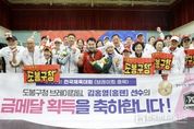 한국현대미술신문 배건 기자 | 도봉구민의 염원이 하늘에 닿았다. 서울 도봉구는 10월 17일 부산에서 열린 제106회 전국체육대회 브레이킹 종목에서 도봉구청 브레이킹팀 소속 김홍열(홍텐)과 오철제(에프이) 선수가 남자 일반부 부문에서 각각 금메달과 동메달을 거머쥐었다고 밝혔다. 브레이킹이 전국체육대회 시범 종목으로 처음 도입된 역사적인 자리에서 획득한 메달이라 그 의미가 남다르다. 이날 선수들을 응원하기 위해 현장을 찾은 도봉구 응원단은 기쁨을 감추지 못하고 서로 부둥켜안는 등 감격에 겨워했다. 경기가 끝난 뒤에도 전부 같은 옷, 같은 응원 도구로 열정적으로 하나 된 모습을 보여준 응원단은 현장 분위기를 더욱 뜨겁게 달궜다. 오언석 도봉구청장은 “김홍열‧오철제 선수의 메달 획득으로 도봉구의 이름이 전국 무대에 새겨졌다. 주민 여러분과 함께 기쁜 순간을 나누게 돼 매우 뜻깊다.”라고 전했다. 금메달을 차지한 김홍열 선수의 경기력은 가히 압권이었다. 김 선수는 기술적 난도와 창의적 표현을 고루 갖춘 연기로 심사단의 호평을 받으며 정상에 올랐다. 오철제 선수도 빠른