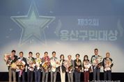 한국현대미술신문 배건 기자 | 서울 용산구가 지난 17일 ‘제32회 용산구민의 날’을 맞아 용산아트홀 대극장 미르(녹사평대로 150)에서 기념식을 열고, 구민과 함께 화합과 소통의 시간을 가졌다. 이날 행사에는 박희영 용산구청장을 비롯해 권영세 국회의원, 김성철 용산구의회 의장, 시·구의원, 정영철 영동군수(자매도시) 등 내빈과 구민 대표 800여 명이 참석해 자리를 빛냈다. 기념식은 용산해방어린이집 중창단과 용산시니어합창단 중창단의 식전공연으로 시작해 ▲기념 영상 상영 ▲구민대상 시상식 ▲기념사 및 축사 ▲기념 퍼포먼스 순으로 진행됐다. 특히, 기념 영상은 구민과의 소통과 공감을 통해 변화한 용산의 모습들을 담아내 행사 의미를 더했다. 올해 ‘용산구민대상’은 ▲임성우·용문동 새마을금고(선행봉사상) ▲정재범(모범가족상) ▲전쟁기념사업회(문화예술상) ▲김도영(생활체육진흥상) ▲서울특별시 용산구상공회·이태원1동 새마을금고(지역발전상) ▲성심수도회 청년공간 바라(환경보호상) ▲강남준(교육발전상) ▲서울특별시 옥외광고협회 용산구지부(안전상) ▲이기수(특별상) 등 11명(단체 포함)이 수상했다.