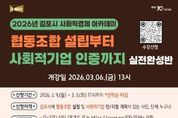한국현대미술신문 배윤섭 기자 | 김포시가 사회문제 해결을 위한 참신한 아이디어와 실행력을 갖춘 사회적경제기업 육성을 위해 ‘2026년 김포시 사회적경제 아카데미’를 개설하고, 오는 3월 3일까지 수강생을 모집한다. 이번 아카데미는 평소 사회적경제에 관심 있는 김포시민은 물론, 연내 협동조합 설립과 사회적기업 인증을 준비 중인 관내 기업, 단체라면 누구나 신청할 수 있다. 교육 과정은 ▲사회적기업 개념 및 인·지정 요건 ▲협동조합 개념, 설립 절차 및 인가 요건 ▲2026년 지원제도 등 사회적경제에 대한 기본 개념을 습득하고, 연내 진입을 위한 사전 준비가 가능하도록 실전형으로 구성했다. 특히 전문가 1:1 멘토링을 통해 ▲사업 아이템의 경쟁력 및 지속가능성 진단 ▲정관, 사업계획서 등 필수서류 작성 ▲심사 및 현장실사 대비 전략 등 기업 맞춤형 컨설팅이 후속으로 지원될 예정이다. 수강신청은 3월 3일까지 온라인으로 가능하며, 자세한 사항은 김포시청 홈페이지를 참조하거나 김포시청 지역경제과로 문의하면 된다. 김포시는 ‘일자리창출을 위한 재정지원’을 비롯해 ‘전략모델 개발비’, ‘교육·컨설