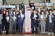 한국현대미술신문 배윤섭 기자 | 수원특례시 ‘사랑의 온도탑’이 올해도 100℃를 넘겼다. 수원시와 경기사회복지공동모금회가 지난해 12월 1일부터 두 달 동안 전개한 ‘희망 2026 나눔캠페인’이 모금 목표액(10억 원)을 초과 달성하며 마무리됐다. 5일 열린 폐막식에는 이재준 수원시장, 수원시의회 이재식 의장을 비롯한 시의원, 경기사회복지공동모금회 관계자 등이 참석했다. 사랑의 온도탑은 0℃에서 시작해 1000만 원이 모금될 때마다 1℃씩 상승하는데, 올해는 10억 7000만 원을 모금해 눈금이 107℃까지 올라갔다. 성금은 경기사회복지공동모금회 지정기탁 방식으로 취약계층 이웃에게 전달한다. 저장장애 가구 주거환경개선사업, 복지사각지대 위기가구 지원 등에 사용된다. 이재준 시장은 “나눔으로 수원시에 온기를 불어넣어 주신 한 분 한 분께 감사드린다”며 “시민 여러분께서 채워주신 100℃의 온기가 도움이 절실한 이웃에게 전달되도록 하겠다”고 말했다.