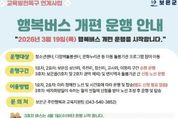 한국현대미술신문 신정은 기자 | 충북 보은군은 교육발전특구사업의 일환으로 2025년 7월부터 운영 중인 ‘행복버스’를 오는 19일부터 개편 운행한다고 밝혔다. ‘행복버스’는 관내 아동들이 이동의 제약 없이 청소년센터, 결초보은 문화누리관, 다함께돌봄센터 등 지역 돌봄기관의 방과 후 프로그램에 참여할 수 있도록 지원하는 사업이다. 지난해에는 이용 신청을 받아 매월 노선을 조정하는 방식으로 운영했으나, 올해부터는 이용 편의성 향상을 위해 수요가 많은 구간은 정해진 노선에 따라 순환 운행하고, 그 외 지역은 신청을 받아 노선을 조정하는 방식으로 운영한다. 총 3대의 버스로 운행되며, 1호차와 2호차는 보은읍 죽전리·장신리·교사리·삼산리·이평리 구간을 중심으로 지난해 운행 데이터를 반영한 고정 노선을 따라 운행된다. 해당 노선은 별도 신청 없이 돌봄기관 이용 아동이 이용할 수 있다. 3호차는 1·2호차 운행 구간을 제외한 보은읍 및 면지역을 대상으로, 돌봄기관 프로그램 참여를 희망하는 아동이 사전에 신청하면 매월 노선을 조정해 운행된다. 노선표 및 배차시간 등 자세한 사항은 보은군청 누리집 공
