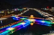 한국현대미술신문 신정은 기자 | 연일 이어진 한파로 괴산군 성황천과 동진천이 얼어붙은 가운데, 두 하천을 잇는 에코브릿지의 경관조명이 얼음 위에 반영돼 겨울밤 수변에 이색적인 풍경을 연출하고 있다. 괴산읍 도심을 흐르는 성황천과 동진천 일대는 최근 강추위로 수면이 꽁꽁 얼어붙으면서, 두 하천을 연결하는 에코브릿지 하부에 설치된 다채로운 색감의 경관조명이 얼음 위로 선명하게 비쳐 고요한 겨울밤 속 색다른 장관을 만들어내고 있다. 얼어붙은 수면 위에 비친 조명은 마치 빛의 길이 펼쳐진 듯한 분위기를 자아낸다. 에코브릿지는 성황천과 동진천을 연결하는 친환경 보행 교량으로, 하천을 따라 형성된 산책 동선을 자연스럽게 이어주는 역할을 하고 있다. 낮에는 주민과 방문객들의 산책과 휴식 공간으로 활용되고 있으며, 밤에는 경관조명을 통해 도심 속 수변 야경 명소로 자리 잡고 있다. 특히 겨울철에는 얼음과 조명이 어우러진 독특한 풍경으로 사진 촬영 명소로도 주목받고 있다. 괴산군 관계자는 “성황천과 동진천을 잇는 에코브릿지가 겨울철 한파 속에서도 도심 수변의 색다른 볼거리를 제공하고 있다”