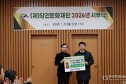 한국현대미술신문 신정은 기자 | (재)당진문화재단이 2026년 새해 업무의 시작을 지역사회를 위한 따뜻한 나눔으로 알렸다. 재단은 5일 오전 개최된 2026년 시무식에서 ‘희망 2026 나눔 캠페인’ 성금 전달식을 가졌다고 밝혔다. 이번 행사는 새해를 맞이해 지역사회와의 상생 의지를 다지고, 문화예술 기관으로서 공공의 사회적 책임을 다하기 위해 마련됐다. 이날 전달된 성금 200만 원은 재단 임직원들이 십시일반 정성을 모아 자발적으로 마련한 기금으로 구성됐다. 재단 구성원 전체가 한마음으로 뜻을 모아 새해 첫 공식 행사를 기부로 시작하며 나눔 문화 확산에 앞장섰다는 점에서 의미가 깊다. 재단은 이번 성금을 충남사회복지공동모금회 ‘희망 2026 나눔 캠페인’ 계좌로 기탁했으며, 전달된 성금은 지역사회 내 따뜻한 손길이 필요한 곳곳에 임직원들의 소중한 뜻과 함께 전달될 예정이다. 당진문화재단 이원철 대표이사는 “시무식을 통해 임직원이 함께 나눔의 가치를 되새기며 새해를 시작하게 되어 뜻깊다”며, “예술이 시민의 삶에 활력을 주듯, 재단 임직원들의 작은 정성이 이웃들에게는 희망의 불씨가 되길 바란다”고