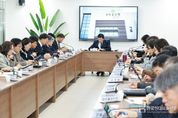 한국현대미술신문 신정은 기자 | 박범인 금산군수는 지난 5일 금산농유원에서 간부회의를 열고 금산농유원에 담긴 의미를 설명하며 이곳에서 열리는 농업인 실용교육 등을 추진하는 데 농업인에게 실질적인 도움이 되도록 신경 쓸 것을 당부했다. 지난해 12월 금산군농업기술센터 내에 개관한 금산농유원은 농업 전문 교육기관으로 교육연구시설, 단체협력사무실, 라이브방송실, 대강당 등 시설을 갖췄다. 특히, 논·밭과 새싹의 의미를 담은 심벌과 농업인의 강직함을 표현한 로고를 통해 농업·농촌의 풍요와 여유를 기원했다. 이어, 박 군수는 “붉은말의 해에는 새로운 각오로 어려움을 극복하고 발전할 수 있도록 해야 한다”며 “긍정적인 마음과 직원 화합에 신경 써달라”고 언급했다. 또한, “군에서 추진하는 큰 사업에 관해 주민들께서 잘 아시도록 노력해야 한다”며 “관련 내용을 설명할 수 있도록 관련 자료를 미리 준비해 달라”고 전했다.