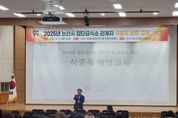 한국현대미술신문 신정은 기자 | 논산시(시장 백성현)는 29일 지체장애인협회 논산시지회 강당에서 ‘소중한사람들 활동지원사 월례교육’을 개최했다. 이번 교육은 활동지원사의 전문성을 강화하고 소중한사람들의 권익 보호를 위해 충남지체장애인협회 논산시지회(회장 손병복)의 주최로 진행됐다. 이날 현장에는 120여 명의 활동지원사가 참석해 부정수급 방지, 업무 보수교육 등 올바른 지원 서비스 제공을 위한 사례 중심 강의로 큰 호응을 얻었다. 백성현 논산시장은 축사를 통해 “리더의 책임은 희망을 실천하는 데서 비롯된다”며 “시민의 안전한 삶을 위한 활동지원사의 역할이 매우 크다”고 강조했다. 이어 “논산의 가치는 세계 속의 논산으로 이어져야 하며, 이는 우리 가족과 후손들에게 큰 변화로 남을 것”이라고 활동지원사들을 격려했다. 또 지체장애인협회 논산시지회 손병복 회장에게 감사의 뜻을 전하며 “이웃을 사랑하는 마음으로 헌신하는 활동지원사분들의 행복을 기원하고 늘 응원하겠다”고 말했다. “이웃을 사랑하는 마음으로 헌신하는 활동지원사분들의 노고에 깊이 감사드린다”고 말했다. 논산시와 지체장애
