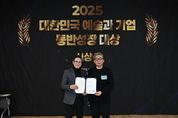 한국현대미술신문 정소영 기자 | 대구문화예술진흥원이 1월 15일 예술가의집(서울)에서 한국문화예술위원회와와 한국지역문화재단총연합회에서 공동 주최한 ‘2025 대한민국 예술과 기업 동반성장 대상’ 시상식에서 한국문화예술위원회 위원장상(우수재단상)을 수상했다. ‘예술과 기업 동반성장’ 사업은 한국문화예술위원회와 한국지역문화재단총연합회가 예술후원의 일상화와 지속가능한 예술 환경 조성을 위해 추진한 사업이다. 진흥원은 2025년 해당 사업을 통해 총 12개의 지역 기업으로부터 1억 2,500만 원을 기부받고, 예술위 지원금 등을 합해 총 3억 7,100만 원을 지역 예술단체에 후원하는 실적을 올렸다. 이와 함께 2025년 11월 26일 ‘메세나 콘서트’를 개최하는 등 지역에 문화예술 후원 가치를 확산하는 데 힘썼다. 이러한 공로를 인정받아 우수재단으로 선정된 진흥원은 시상식에서 한국문화예술위원회 위원장상을 수상했다. 이와 함께 지역의 우수기업 부분에 동일산업㈜, 우수예술단체 부분에 대구음악협회가 동반 수상하는 성과를 거뒀다. 특히 지역 중견기업 동일산업㈜은 1988년 (재)동일문화