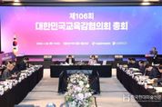 한국현대미술신문 정소영 기자 | 대한민국교육감협의회(회장 강은희 대구광역시교육감)는 1월 29일, 경기도 성남시 더블트리바이힐튼서울판교호텔에서 제106회 총회를 개최했다. 이번 총회에서는 전국 시도교육감 및 교육청 관계자, 협의회 사무국 관계자 약 200명이 참석하여 '사립학교의 ‘공직자 이해충돌방지법’ 적용을 위한 법령 개정 건의' 등 5개 안건을 심의·의결했고, '행정통합 추진에 따른 경과 및 쟁점'에 대해 교육의제로 토의했다. 이날 심의 안건은 ▲사립학교의 ‘공직자 이해충돌방지법’ 적용을 위한 법령 개정 건의, ▲외부강의 등 요청 표준서식 마련 요구, ▲‘보호자 협조·동의 관련’ 기초학력 보장법 및 동법 시행령 개정 요청, ▲교육활동 침해 학생의 학적변동 제한을 위한 법률 개정 건의, ▲학습지원 소프트웨어 관련 초·중등교육법 개정 제안으로 모두 5개의 안건을 심의·의결했고, 지난해 12월 11일 실무협의회를 통해 전국 17개 시도교육청의 전원 합의 과정을 거쳤다. 다음으로 2개 교육청에서 우수사례를 발표했는데, ▲(경기) 시·공간 경계를 넘어 세계를 잇는 한국어교육 온라인 경기한국어랭귀지스쿨(KLS 3섹터
