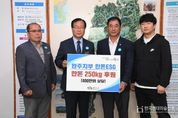한국현대미술신문 기자 | (사)대한한돈협회 완주지부가 완주군에 400만 원 상당의 돼지고기 전지 250kg를 전달했다. 최근 열린 전달식에는 유희태 완주군수를 비롯해 조동선 지부장, 추금해 부지부장, 박수홍 사무국장, 이중완 감사, 정영수 전 부지부장 등 5명이 참석했다. 전달된 돼지고기는 관내 사회복지시설에 전달했다. 대한한돈협회 완주지부는 2014년부터 매년 돼지고기를 꾸준히 후원하며 나눔을 이어오고 있다. 조동선 지부장은 “지역사회와 함께하는 것은 우리 한돈 농가의 책임이자 보람”이라며 “앞으로도 따뜻한 나눔을 통해 어려운 이웃에게 힘이 될 수 있도록 노력하겠다”고 말했다. 유희태 완주군수는 “매년 잊지 않고 꾸준한 나눔을 실천해주시는 대한한돈협회 완주지부에 깊이 감사드린다”며 “소중한 후원품이 어려운 이웃들에게 온전히 전달될 수 있도록 최선을 다하겠다”고 전했다.