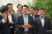 한국현대미술신문 기자 | 김민석 국무총리가 추석 연휴 기간인 8일 스마트농업 시설 운영 실태와 안전관리 체계를 점검하기 위해 김제 백구 스마트팜 혁신밸리를 방문했다. 이번 방문은 추석 연휴 중에도 현장을 멈추지 않겠다는 정부의 국정운영 기조에 따라, 스마트농업의 거점인 김제 스마트팜 혁신밸리를 통해 농업의 미래 산업화와 지역 균형 발전 방향을 점검하기 위해 추진됐다. 전북 김제 스마트팜 혁신밸리 내 ▲청년창업 보육센터, ▲임대형 스마트팜, ▲빅데이터센터 등 주요 시설을 둘러보며 자동화·센서제어 시스템 작동상태, 작물 생육관리, 에너지 효율화 현황 등을 점검했다. 정성주 김제시장은 “김제 스마트팜 혁신밸리는 지역 농업의 미래를 바꾸는 핵심 거점”이라며, “국무총리의 현장 방문을 계기로 스마트농업의 확산과 청년농업인 육성 정책이 더욱 탄력을 받을 것으로 기대한다”고 밝혔다. 이어 “정부의 정책 방향에 맞춰 현장 중심의 행정과 지역 맞춤형 지원을 강화하고, 청년들이 안심하고 정착할 수 있도록 최선을 다하겠다“ 덧붙였다. 김민석 국무총리는 “추석 연휴 기간에도 현장은 찾은 이유는 국민의 일상