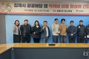 한국현대미술신문 기자 | 김제시는 지난 3일 시청 상황실에서 공공배달앱 ‘먹깨비’ 이용 활성화 방안 논의를 위해 운영사, 가맹점주, 배달업체, 시 관계자가 참석한 가운데 운영 현황을 공유하고 현장 의견을 청취하는 간담회를 개최했다고 밝혔다. 이날 간담회에서는 먹깨비앱의 지역 내 주문 비중, 신규 가맹점 증가 추세, 시민 이용률 등 운영 현황이 보고됐으며, 참석자들은 △앱 이용자 불편사항 청취, △지속적인 이용 활성화 방안, △앱 인지도 제고를 위한 홍보 방안, △효과적인 할인 쿠폰 제공 방안 등 실질적인 개선 과제를 논의했다. 가맹점주들은 “민간 배달앱 대비 낮은 수수료가 장점임에도 불구하고 시민 인지도 부족과 제한적인 프로모션이 활성화를 저해하고 있다”며 시 차원의 적극적인 홍보 지원을 요청했다. 배달업체 관계자 또한 “㈜먹깨비와 협력해 홍보물 배부 등 소비자에게 먹깨비앱을 알리기 위한 활동에 적극 동참하겠다”는 뜻을 밝혔다. 운영사인 ㈜먹깨비 측은 “지역 사용자 데이터 분석을 기반으로 김제시에 특화된 맞춤형 홍보를 추진하고, 실제 이용자 의견을 반영한 사용자 편의 기능 개선을 지속해 나가겠다”며 “시와 가