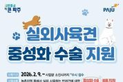 한국현대미술신문 배윤섭 기자 | 파주시는 실외에서 사육되는 반려견의 무분별한 번식을 예방하고 유실·유기 동물 발생을 줄이기 위해 녪년 실외사육견 중성화수술 지원사업’을 2월 9일부터 추진하고 있다. 해당 사업은 농촌지역 등에서 마당이나 울타리 안에서 기르는 5개월령 이상의 반려견을 대상으로 중성화 수술비를 지원하는 사업이다. 이를 통해 무분별한 번식으로 인한 유기견 발생을 사전에 차단하고, 개체 수를 효율적으로 관리하는 것을 목표로 한다. 지원 대상은 파주시 농촌지역 등 실외에서 반려 목적으로 개를 사육하는 시민이며, 신청하려면 거주지 관할 행정복지센터 또는 파주시농업기술센터 3층 동물관리과를 방문하면 된다. 대상자로 선정되면 지정 동물 병원과 사전 협의를 거쳐 중성화 수술을 진행하게 된다. 올해 사업 규모는 총 180마리로, 1마리당 최대 40만 원(암컷 기준)까지 지원하며 가구당 10마리 이내로 제한된다. 특히 기초생활수급자, 차상위계층, 65세 이상 고령자는 우선 지원 대상이다. 이광재 동물관리과장은 “실외사육견 중성화수술 지원사업은 유기견 증가를 예방하고 시민 불편을 줄이는 데 크게 기여할