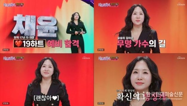 한국현대미술신문 배건 기자 | 가수 홍지윤이 ‘현역가왕3’ 첫 무대에서 인상 깊은 무대를 펼쳤다. 홍지윤은 지난 23일 첫 방송된 MBN 새 예능 프로그램 ‘현역가왕3’에 출연해 태극마크를 향한 첫 걸음을 내디뎠다. 현역 5년차로 ‘현역가왕’에 도전장을 던진 홍지윤은 머메이드 라인의 롱 드레스와 조개 껍데기 형상의 대형 백 장식으로 ‘비너스’를 형상화했다. 우아한 분위기에서의 등장과 다르게 백 장식에 뒤통수를 부딪히며 슬랩스틱으로 웃음을 선사한 홍지윤은 참가자들과 정답게 인사를 나누면서도 선의의 경쟁을 위한 각오를 다졌다. 현역들이 뽑은 가왕 후보 2위에 이름을 올린 홍지윤은 높은 기대감 속에 ‘뜬소문’ 무대를 선보였다. 홍지윤은 “국민들께서 지어준 ‘트롯 바비’ 앞에 한일전 국가대표 딱지 붙이고 싶다”며 “나를 알고 적을 알면 백전백승이라고 하는데 일본어 공부도 열심히 하고 있다. ‘현역가왕’의 적임자가 아닐까 싶다”고 자신감을 보였다. 홍지윤은 “근거 없는 뜬소문이 많아서 억울함을 풀고 싶다. 열애설도 많았고, 선배님들도 진짜로 그 친구와 사귀냐고 하시더라. 방송에서