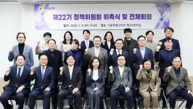 한국현대미술신문 배윤섭 기자 | 서울특별시의회(의장 최호정, 서초4, 국민의힘)는 6일 정책위원회 위촉식과 전체 회의를 개최하여 제22기 정책위원회를 정식 출범시켰다. 이날 회의에서 기획경제위원회 소속인 김용일(서대문4, 국민의힘) 의원이 위원장으로 선출됐고, 위원장의 지명과 추천으로 도시계획균형위원회 소속인 허훈 의원(양천2, 국민의힘)과 이근만 위원(서울에너지공사 이사회의장)을 부위원장으로 각각 선출했다. 서울특별시의회 정책위원회는 2004년 전국 지방의회 최초로 도입되어 오늘에 이르기까지 활발한 입법 및 정책연구 활동으로 서울시의회가 정책의회로 자리매김하는 데 크게 기여해 왔다. 이날 최호정 의장(서초4, 국민의힘)은 위촉식에 참석해 제22기 정책위원회 출범에 축하 메시지를 전하면서 성공적인 운영을 당부했으며 김위원장을 비롯한 참석 위원들에게 위촉장을 직접 수여했다. 김용일 제22기 정책위원회 위원장은 “서울시 각 분야별 주요 정책을 면밀히 연구하고, 신규 정책을 발굴·제안하여 시정발전의 원동력이 되고, 나아가 그 성과가 지역발전과 시민들의 복리증진에 도움이 될 수 있도록 열과 성을 다할 것”