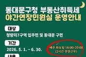 한국현대미술신문 배건 기자 | 서울 동대문구가 청량리7구역(롯데캐슬 하이루체) 입주 시기에 맞춰 '취득세 야간 연장 민원실'을 운영한다고 밝혔다. 야간 연장 민원실은 주간에 생업 등으로 구청 방문이 어려운 직장인 등 구민들의 세무 행정 편의를 위한 맞춤형 서비스다. 보금자리 마련과 이사 준비로 바쁜 입주민들이 기한 내 취득세 신고를 마쳐 가산세 등의 불이익을 받지 않도록 하는 데 중점을 뒀다. 야간 연장 민원실은 오는 5월 1일부터 6월 30일까지 두 달간 매주 화요일 오후 6시부터 8시까지 동대문구청 2층 세정과 민원창구에서 한시적으로 운영한다. 구민들은 부동산 취득세 신고는 물론, 개별 상황에 맞춘 세무 상담도 받을 수 있다. 김기현 부구청장은 “주간 방문이 어려웠던 구민들이 여유롭고 편안하게 야간 창구를 이용하시길 바란다”라며 “대규모 입주에 따른 불편을 최소화하고, 선제적인 세무 행정 서비스를 제공해 신뢰받는 동대문구를 만들어가겠다”라고 말했다.