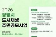 한국현대미술신문 배윤섭 기자 | 광명시가 오는 20일까지 주민이 스스로 마을 문제를 해결하고 공동체 활성화를 이끌어갈 ‘2026년 도시재생 주민공모사업’ 참여단체를 모집한다. 이번 공모사업은 광명시 전역을 대상으로 하는 ‘그린라이트 광명 주민공모사업’과 광명3동 더드림 도시재생활성화지역을 대상으로 하는 ‘광명3동 더드림 주민공모사업’ 두 가지 유형으로 운영한다. ‘그린라이트 광명 주민공모사업’은 일반공모 2팀과 기획공모 1팀을 선정해 공동체 활성화, 탄소중립 프로그램 운영, 소규모 도시공간 개선 등 주민 아이디어를 사업으로 발전시키는 활동을 지원한다. 일반공모팀은 팀당 최대 500만 원, 기획공모팀은 팀당 최대 1천만 원을 지원한다. ‘광명3동 더드림 주민공모사업’은 광명3동 도시재생 활성화지역의 마을 문제 해결과 공동체 협력 프로그램 등을 주제로 공모를 진행한다. 4팀을 선정하며 팀당 최대 500만 원을 지원한다. 시는 주민공모사업 이해를 돕기 위해 오는 12일 오후 3시 광명3동 어울리기 문화발전소(광명동 126-31)에서 사업설명회를 개최한다. 또한 사업 성과 확산을
