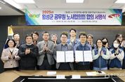 한국현대미술신문 원진 기자 | 횡성군과 전국공무원노동조합 횡성군지부(지부장 성기영)는 4일 횡성군청 소회의실에서 ‘2025년 횡성군 공무원 노사협의회 합의서 서명식’을 개최했다. 서명식에는 공동의장인 최태영 부군수 및 이준연 수석부지부장을 포함, 노사협의회 위원 14명이 참석해 협의 결과를 공식 확인했다. 횡성군과 횡성군지부는 지난 9월 2일 열린 노사협의회에서 후생복지, 재난안전, 인사 등 3개 분야의 10개 안건을 상정했으며, 약 4개월간의 협의 과정을 거쳐 모든 안건에 대해 최종 합의에 도달했다. 특히 올해 노사협의회는 공무출장 중 교통사고 발생 시 보험료(본인부담금) 지원, 읍·면 행정복지센터의 업무공간·민원공간 분리 등 공무원의 사기진작과 근무환경 개선에 중점을 두고 논의를 진행했다. 최태영 부군수는 “공무원노조와의 지속적인 소통과 협력을 바탕으로 직원들의 후생복지 향상과 근무 의욕 제고에 최선을 다하겠다”며 “활기찬 직장 분위기 조성을 위해 지속적으로 노력하겠다”고 말했다. 한편, 횡성군은 이번 합의사항이 충실히 이행될 수 있도록 관련 사업의 부서별 예산 편성 절차를 거쳐 2