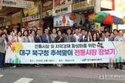 한국현대미술신문 정소영 기자 | 대구 북구청은 민족 고유 명절인 추석을 앞두고 10월 1일 14시 30분부터 팔달신시장에서 구청장과 간부공무원 등 50여 명이 참여하여 장보기 행사를 가졌다. 해마다 명절이면 온라인 쇼핑몰, 대규모 유통업체 등 이용으로 위축된 전통시장에 활력을 불어넣고자 장보기 행사를 개최했다. 이날 장보기 행사에는 배광식 북구청장을 비롯한 구청 실·과장 이상 간부공무원과 참여 희망 직원 등 50여 명이 자율적으로 참여하여 전통시장 곳곳을 돌며 제수용품과 다양한 먹거리를 구입하면서 각 상인들과는 전통시장의 상황 등을 소통하고, 시장을 찾는 주민들에게는 온누리상품권 환급행사와 시장 홍보 활동도 병행했다. 배광식 북구청장은 “추석을 맞이하여 물가상승과 경기침체로 어려움을 겪고 있는 전통시장에 활력을 불어넣고 상인들에게 조금이라도 도움이 되고자 장보기 행사를 마련했다.”며, “이번 행사를 계기로 더 많은 주민들이 전통시장을 이용하고, 추석 연휴 동안 가족들과 즐거운 명절을 보내시길 바란다.”고 전했다.