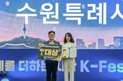 한국현대미술신문 배윤섭 기자 | 수원특례시가 ‘제6회 대한민국 축제 엑스포 베스트 축제 어워드’에서 기초자치단체 부문 대상을 받았다. 시상식은 19일 수원컨벤센센터에서 열렸다. 수원시는 17~19일 수원컨벤션센터에서 열린 제6회 대한민국 축제 엑스포에 참가해 부스를 운영하며 ‘2026-2027 수원 방문의 해’와 수원화성문화제, 정조대왕능행차 공동재현, 수원화성 미디어아트 등 수원시를 대표하는 축제를 방문객들에게 홍보했다. 베스트 축제 어워드 수상 지자체는 홍보 부스 운영계획, 프로그램 참여도, 현장 평가 등을 종합적으로 평가해 선정한다. 수원시는 마케팅, 콘텐츠, 부스 운영, 대중 선호도 등 모든 분야에서 우수한 성과를 인정받아 최고점을 받았다. 시상식에 참석한 선은임 수원시 문화관광체육국장은 “대한민국 축제 엑스포에서 수원의 축제 역량을 인정받고, 대상을 받게 돼 기쁘다”며 “앞으로도 차별화된 콘텐츠로 글로벌 축제 도시로서 위상을 높여 나가겠다”고 밝혔다. 대한민국 축제 엑스포는 전국의 대표 축제들을 만날 수 있는 국내 최대 축제 전문 박람회다.