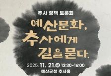 예산군, 11월 21일 '추사 정책토론회' 개최